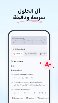 تجربة حل الواجبات لم تكن بهذه السهولة من قبل. كل ما عليك فعله هو التقاط صورة لمشكلتك، وسيقوم نظام Gauth الذكي بالتعرف عليها واقتصاص السؤال تلقائياً بدقة. بعدها، يتولى خبراؤنا مهمة تزويدك بالحلول في لمح البصر، مع إجابات منظمة وشروحات مبسطة تجعل التعلم ممتعاً ومفيداً. مع Gauth، نهدف إلى تحويل تجربتك مع الواجبات المدرسية من عبء إلى فرصة للاكتشاف، حيث يصبح الفهم العميق والإتقان في متناول يدك، وتكتشف أن الواجبات المنزلية يمكن أن تكون ممتعة ومبسطة حقاً.