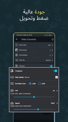 استكشف أسرع محول وضغط فيديو يدعم جميع التنسيقات الرئيسية. حول، اضغط، وغير دقة الفيديو ومعدل الإطارات ومعدلات البت بسهولة. يمكنك أيضًا تحويل الفيديو إلى صيغ صوتية متنوعة. أداة شاملة لمعالجة الوسائط.