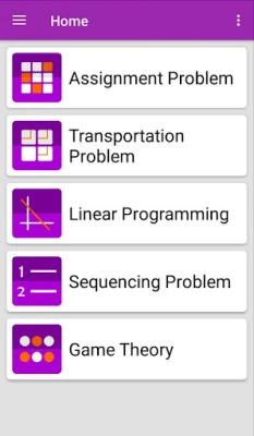 اكتشف هذا التطبيق المصمم كأداة قوية لحل وحساب مشاكل بحوث العمليات والإدارة الصناعية المعقدة. يقدم حلولًا دقيقة لمسائل مثل مشكلة التعيين والنقل، البرمجة الخطية، مشكلة التسلسل، ونظرية الألعاب بفعالية وسهولة.