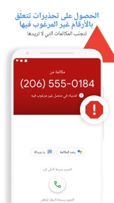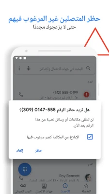 مع تطبيق "الهاتف"، ودّع المكالمات المزعجة والمتطفلين إلى الأبد. يعمل التطبيق كدرعك الرقمي، حيث ينبهك فورًا بوجود متصلين مشكوك في أمرهم، ويمنحك القدرة على حظر أي أرقام غير مرغوبة بضغطة زر، لتستعيد بذلك هدوءك. ومع ميزة هوية المتصل الشاملة والمدعومة من Google، ستعرف دائمًا من يحاول الوصول إليك، سواء كان فردًا أو مؤسسة، مما يمكنك من الرد بثقة تامة واطمئنان.