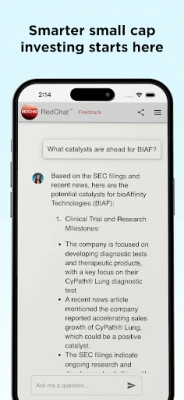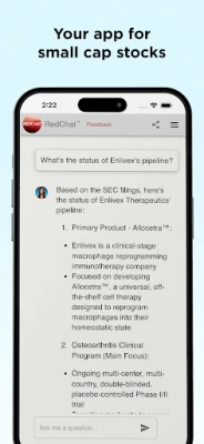 RedChat هو مساعدك البحثي المدعوم بالذكاء الاصطناعي للأسهم الأمريكية. سواء كنت تتداول الأسهم منخفضة القيمة، الشركات الصغيرة، الشركات متناهية الصغر، أو الأسهم القيادية، RedChat يساعدك على تحليل الشركات بشكل أسرع وأكثر ثقة.