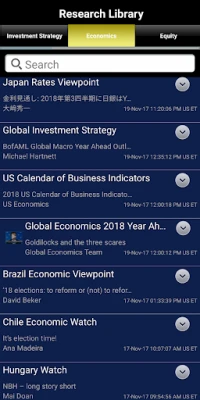 تطبيق BofA Global Research Library يقدم لعملاء BofA Securities وصولاً سهلاً وشاملاً إلى أبحاثنا المتميزة والخاصة. استكشف محتوى بحثياً رفيع المستوى، مصمماً ليلائم احتياجاتك المهنية، في أي وقت ومن أي مكان.