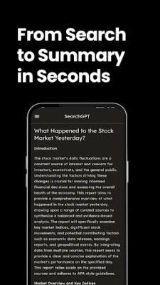 سواء كنت طالبًا يعمل على بحث أكاديمي، باحثًا يتابع أحدث التطورات، محترفًا يسعى لفهم اتجاهات السوق، أو مجرد فضولي يبحث عن إجابات سريعة، فإن SearchGPT مصمم ليلبي احتياجاتك بمرونة تامة. يوفر التطبيق واجهة مستخدم بسيطة وبديهية، تضمن لك تجربة بحث ممتعة وفعالة ومحسّنة بالكامل للاستخدام على الأجهزة المحمولة. وبفضل تركيزه على الخصوصية والأمان، يضمن SearchGPT أن تظل بياناتك وبحوثك خاصة بك وحدك، دون تخزين لسجلك أو استخدام استعلاماتك لأغراض إعلانية. اختر SearchGPT لتجربة بحث متطورة تجمع بين حداثة البيانات ودقة الملخصات الذكية، بعيدًا عن الحشو، ومركزة على الحقائق والسياق فقط.